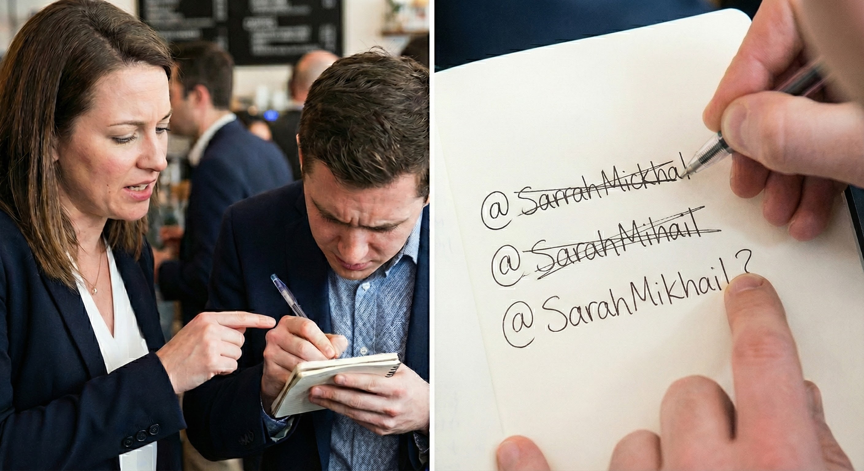 Sarah, a marketing consultant, used to collect 20-30 contacts at industry conferences. Her follow-up rate? About 40% actually connected on LinkedIn.